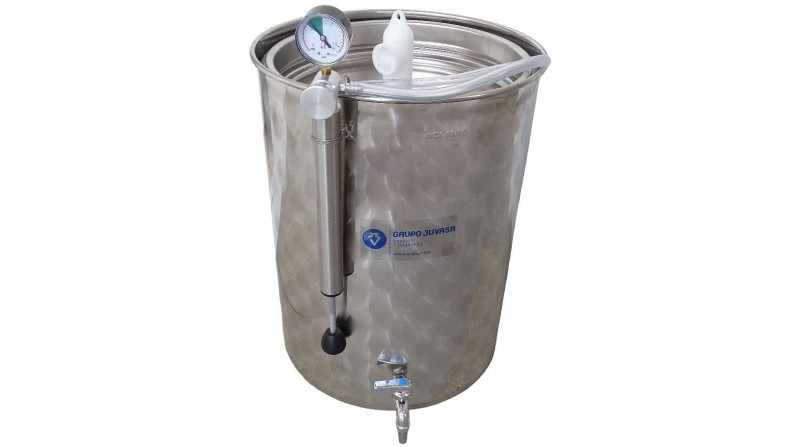 Depósito de acero inoxidable para su uso alimentario (vino, aceite, leche, zumos, atc). Con este tanque de 200 litros de capacidad podrás conservar todas las propiedades de tu producto gracias a su sistema de cierre, que al ajustarse al nivel de llenado evita cualquier contacto con el aire.
