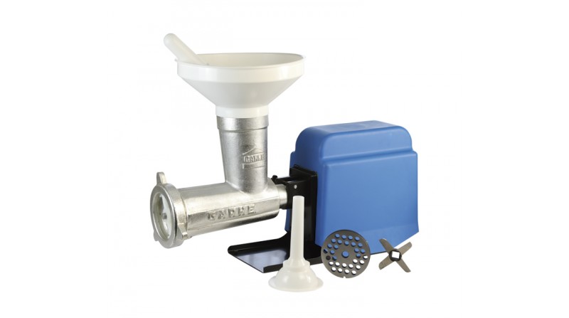 Picadora embutidora eléctrica con motor cubierto y cabezal Nº32 desmontable de boca alta que garantiza una seguridad total.